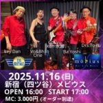 出演者Dr, JR Robinson Ba,Vo ,Derek Short Gt,Hiro Honnma