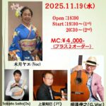出演者木月 ヤエ(voc) Takato Saito(Ds) 上里 知巳(Pf)柳澤伸之(G,Voc)