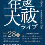 2025/12/28 Sun [open/17:00] [start/18:00] 「三宗教 年越し大祓ライブ」 3宗教 SPECIAL LIVE 出演者「坊主バンド」善念(神仏兄弟 兄) 「歌う神主」壮紫(神仏兄弟 弟) 「酒場で教会」牧師とおる チャージ料 MC 3,000円(税別)