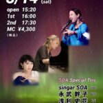 出演者Singar SOA(vo) 永武幹子(pf) 浅利史花(gt)