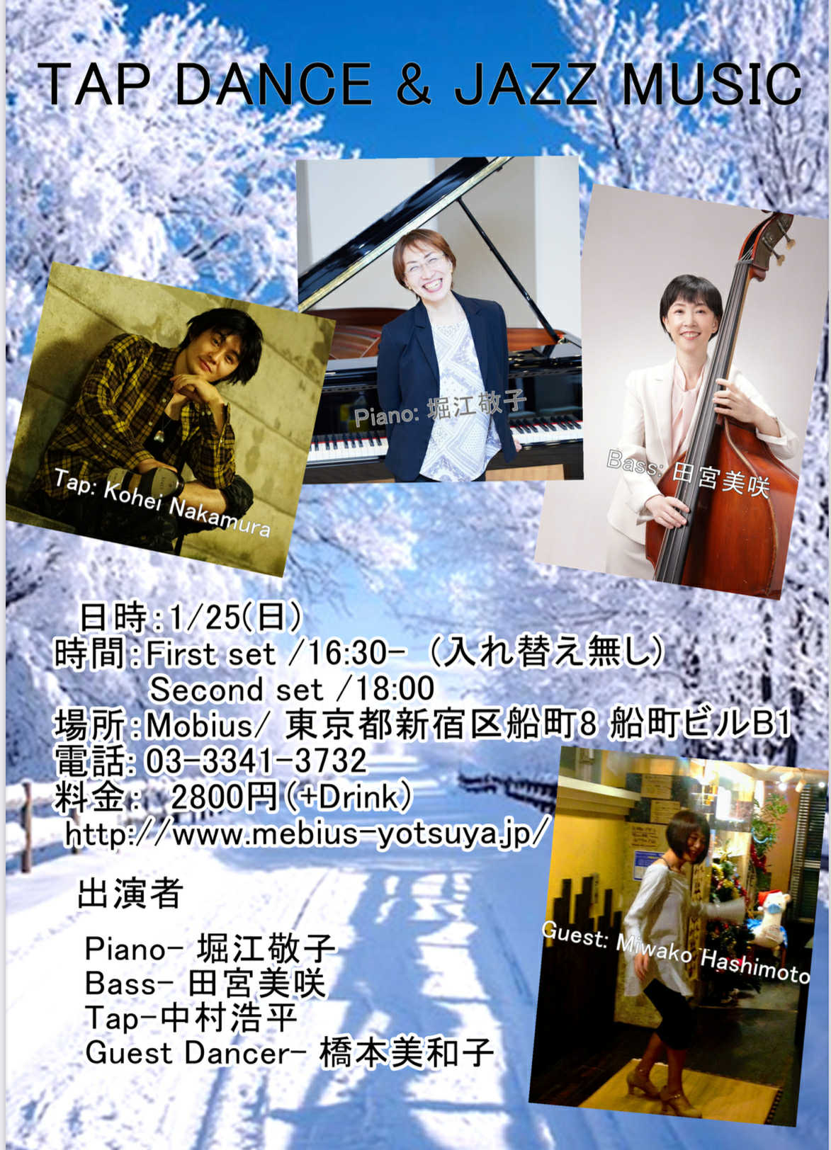 出演者Pf 堀江 敬子  Bass 田宮 美咲  Tap 中村 浩平  Guest Dancer 橋本 美和子