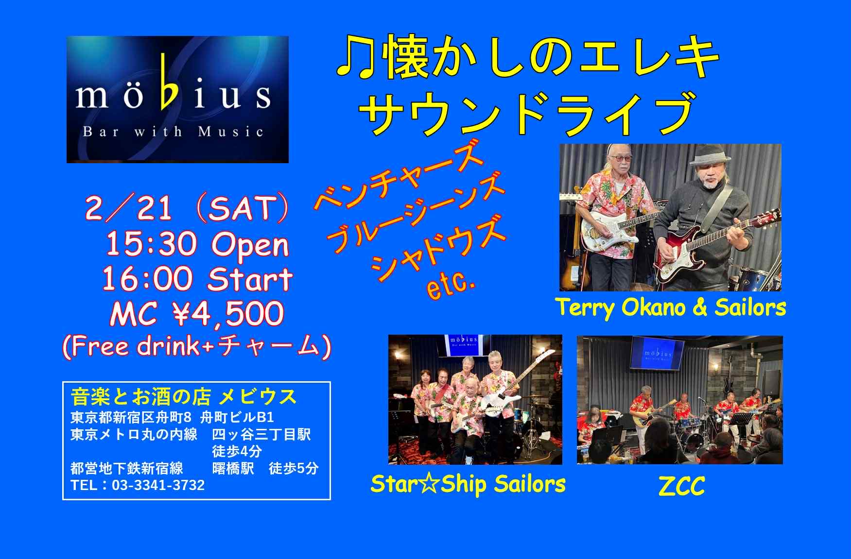 懐かしのエレキサウンドライブ ベンチャーズ ブルージーンズ シャドウズ etc 開催日2026/02/21(土曜日) オープン15:30 スタート16:00 出演者Star☆Ship☆Sailors ZCC Terry Okano & Sailors チャージ料4500円(税込)(フリードリンク+チャーム)